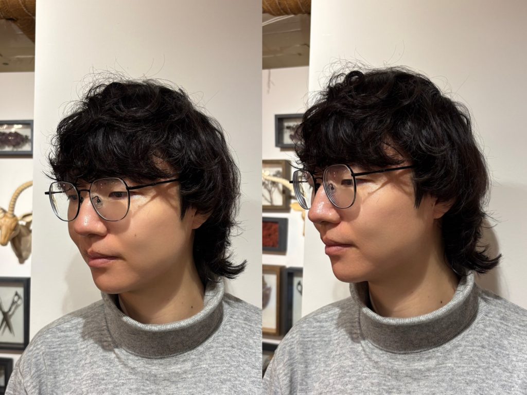 ドライパーマの面白いところは、濡れた状態(ウェット)と乾いた状態(ドライ)で全く異なる表情を楽しめること。