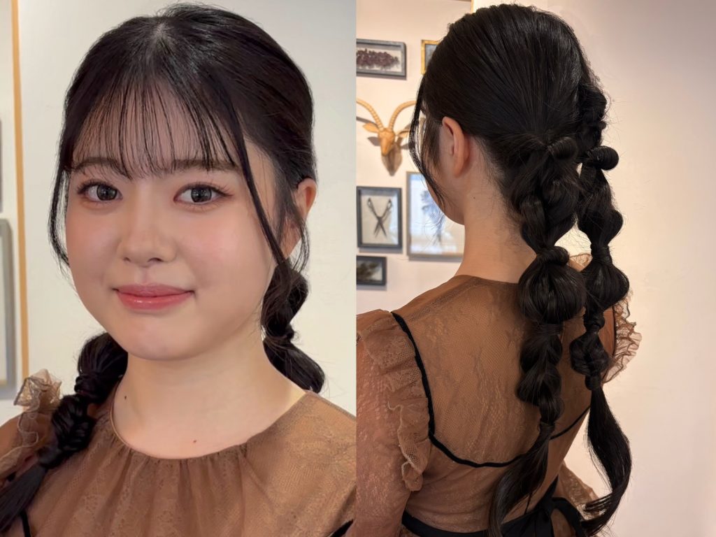 Set+Make up🐰💝 2025.12.260.BLOG, 21.Natsumiこんにちは!MINTingのNatsumiです! 多幸感あふれるツヤ肌ピンクメイクやりすぎてない自然な盛れテク いっぱい詰めてます! 骨格や左右差も見ながらメイクをさせていただきますのでナチュラルに加工したかのようなお顔に✨ ヘアは編みおろしツインポニーヘアで周りとの差をここでプラス 顔周りの毛やお顔の形、メイクとのバランスを見ながらセットさせていただきます。結婚式の参列やイベント前にぜひ!ご予約はこちらから Tweet Share RSS Pin it 0.BLOG, 21.Natsumiオケージョンヘア, お呼ばれヘア, お呼ばれメイク, ツインヘア, ピンクメイク, 参列ヘアメイク, 編みおろし, 編みおろしツインポニーコメント: 0 ナチュラルピンクブラウンで叶える、冬の柔らかヘアスタイル
